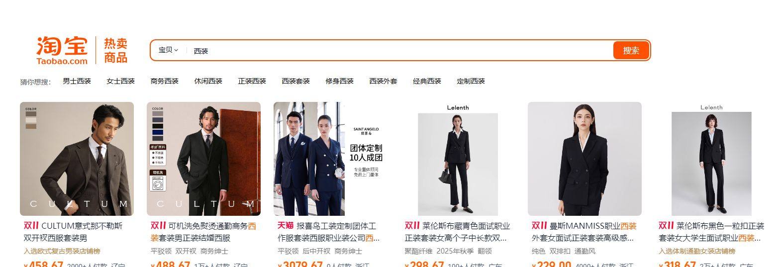 如搜索“西装”